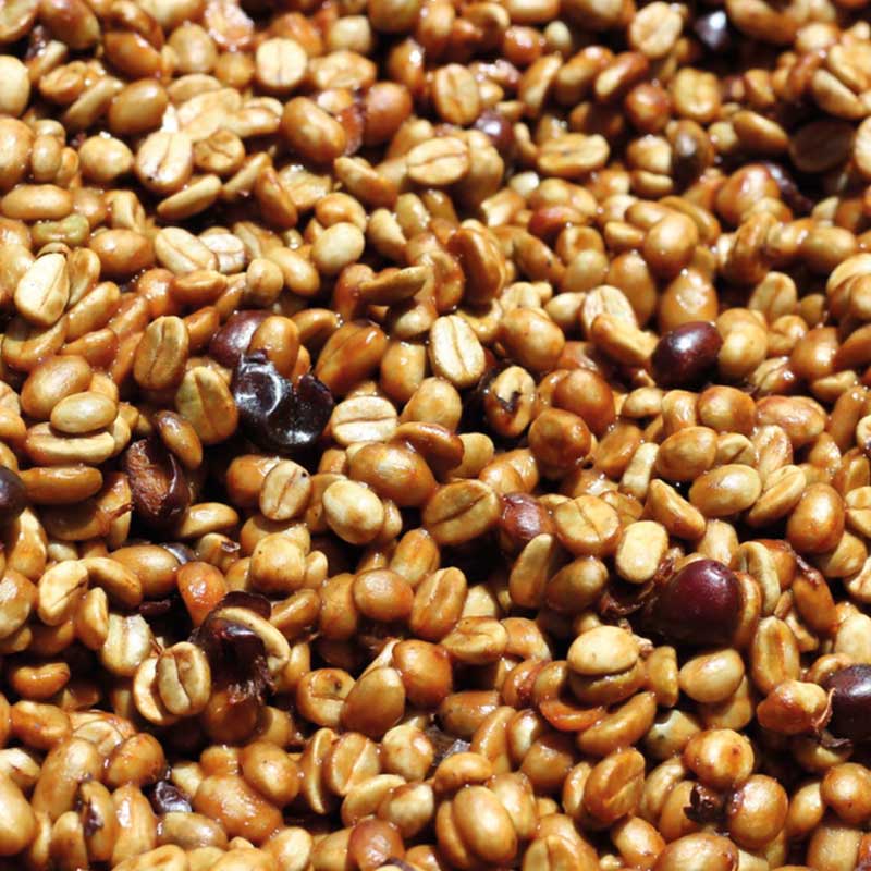 Harvesting is done manually, with a careful selection of 100% ripe beans that contain a high degree of brix. This activity is carried out daily from December until the end of February. In addition, lots are separated by variety and farms at the mill, allowing the production of specialty micro lots. At Las Lajas, they harvest and process their own coffee to achieve a high cup quality. Initially, during the harvesting process, they select the 100% ripe beans that have a high percentage of brix. Then, the coffee is transported from the farm to the Las Lajas mill, where it is measured by volume to verify the amount of coffee harvested in a day. Once measured, it is separated into micro lots for processing. A Black Honey micro lot, it is a honey process where the red coffee beans must be pulped. Once pulped, they are moved to African beds. During the first two days, the beans are not moved, but after that, periodic movements (3 to 4 times a day) begin to decrease the coffee's humidity. This process takes around 15 to 20 days. After processing the coffee and achieving optimal drying levels (11%), the coffee is packed in new bags and labeled according to the assigned lot for subsequent rest in the warehouse. The coffee should rest for around 60 days or more before it is exported.