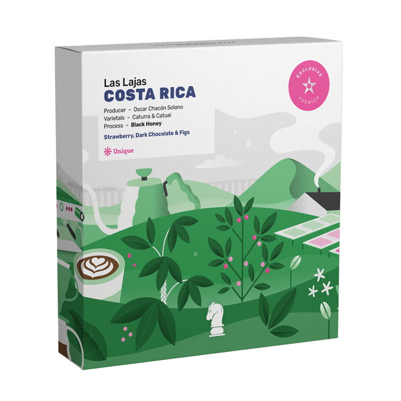 The producer is Oscar Chacón Solano and the farm is named Las Lajas. In 1988, following the death of Oscar Chacón's father, his legacy of 50 hectares of land was left to his six children. From that point on, the Chacón siblings decided to change their coffee production system, focusing their efforts on environmental conservation, providing stable employment for their workers, and keeping coffee culture alive in their family and community. In the early 2000s, Oscar Chacón and Francisca Cubillo, representing the third generation of coffee producers in their family, decided to process the coffee from their own farms, giving rise to the Las Lajas Ecological Benefit. During these early years, Oscar and Francisca were in pursuit of excellence, as well as offering a differentiated product within the coffee market. Hence, in 2006, they introduced the natural process when an earthquake left the Sabanilla area without light and water for a long time, making it impossible to carry out the traditional washing process. They export 2700 sacks annually.